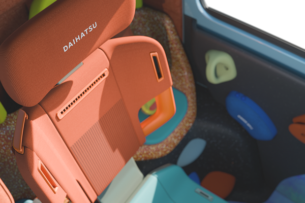 Daihatsu также показала в рамках Japan Mobility Show шоу-кар под названием K-Vision. Этот концептуальный кей-кар, базирующийся на платформе DNGA, оснащается подзаряжаемой гибридной силовой установкой. Автомобиль имеет двухобъёмный кузов, светодиодную головную оптику с «O-образным» рисунком (и вторящие фарам фонари на корме), большой воздухозаборник, обычные наружные зеркала и распашные двери. Официальной информации о серийных перспективах этой новинки пока нет, но выглядит она практически готовой к производству.