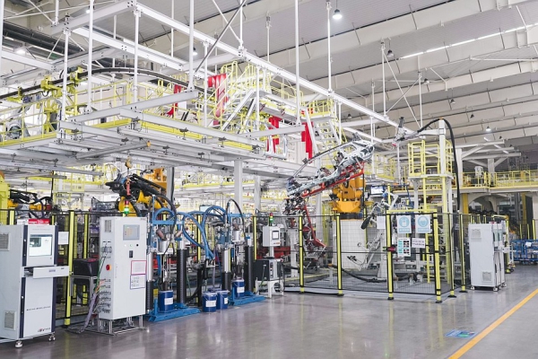 В логистической зоне 163 типа самоходных транспортных устройств (AGV) централизованно управляются единой системой, отслеживающей их положение в реальном времени. Тележки с электроприводом доставляют тяжёлые компоненты непосредственно к рабочим станциям, повышая эффективность логистики примерно на 20%. На линии реализованы автоматические процессы подбора материалов, контроля качества, установки сидений и колес. Только для реализации и контроля затяжки деталей используется 165 высокоточных инструментов. Участок сборки колёс оснащён четырьмя японскими роботами FANUC, которые обеспечивают полностью автоматическое бортирование шин на 14 станциях. Для залива технических жидкостей применяется немецкое оборудование DURR.
