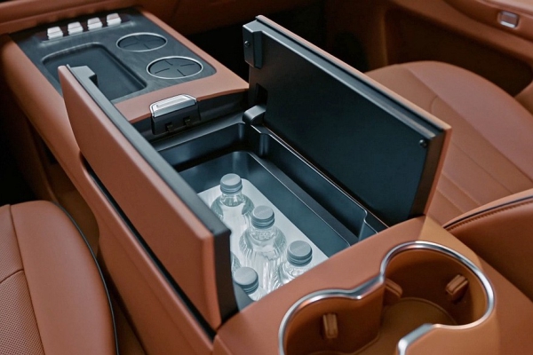Внутри установлены отдельный приборный экран и гигантское табло, состоящее из двух тачскринов. На центральном тоннеле расположены одна площадка для беспроводной зарядки смартфона, ряд физических рычажков и подстаканники. В самом тоннеле спрятан бокс с функциями подогрева и охлаждения. В переднюю пассажирскую дверь и обе задние двери встроены собственные площадки для зарядки, причем с вентиляцией. Итого, у кроссовера аж четыре таких панели.