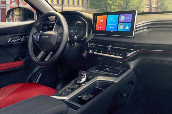 Внешность нашему Jolion подправили два года назад, и на этот раз ее менять не стали. А вот интерьер передали. Внутри установили новую переднюю панель. Также был изменен блок управления на центральной консоли: сами кнопки теперь другие, плюс добавлен кругляш для регулировки громкости. Кроме того, этот блок отныне находится под дефлекторами обдува, а не над ними. Рулевое колесо получило утолщенный обод, к разъемам USB типа A добавили порты типа C (один спереди, два сзади). Как и прежде, в начальных исполнениях Haval Jolion имеет мультимедийную систему с 10-дюймовым планшетом, у версий побогаче – экран диагональю 12,3 дюйма. Мультимедиа – с новым дизайном интерфейса, еще появилось работающее в офлайн-режиме голосовое управление.