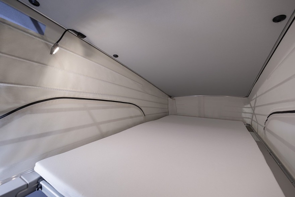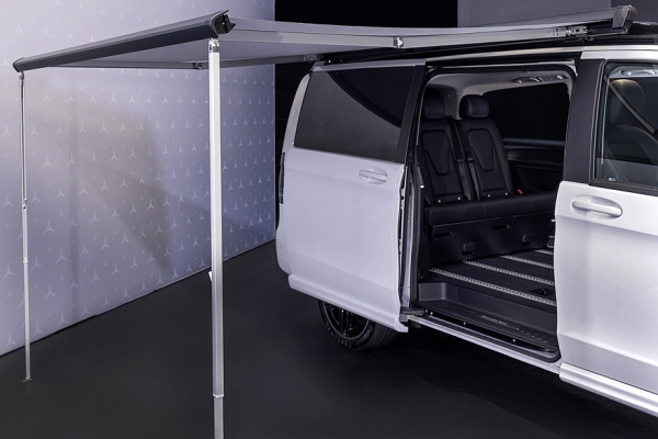 В пресс-службе марки рассказали о том, что «глэмпинг-мобиль» получил новую выдвижную крышу с электроприводом, которая обеспечивает спальное место в верхней части автомобиля. Она имеет прочный и лёгкий алюминиевый каркас с двойной обшивкой. Такая «палатка» остаётся изолированной практически при любых погодных условиях, кроме того, теперь у неё есть дополнительный запас высоты на 10 см (когда задняя секция поднимается на полную высоту).