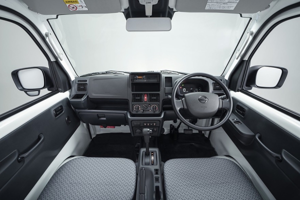 Изменения есть и в салоне обновлённого Nissan Clipper Truck. Так, теперь перед водителем расположен цифровой щиток приборов, на передней панели появились дополнительные ниши и пара квадратных подстаканников по бокам, кроме того, предусмотрены USB-разъёмы (Type-A и Type-C). Ещё грузовичку теперь положены сиденья с интегрированными подголовниками.