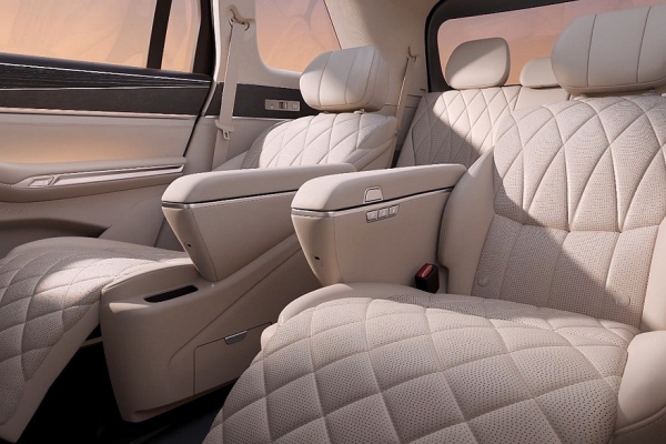 Среди особенностей внешности свежего SUV – расположенная под капотом изогнутая светодиодная полоска практически во всю ширину передка, вертикальные блоки фар, которые состоят из нескольких диодных же квадратных секций и примкнувших к ним светящихся полосок, выкидные ручки дверей и сделанные в виде единой плашки задние фонари. Для кроссовера также заявлены продвинутый автопилот с лидаром и пневмоподвеска.