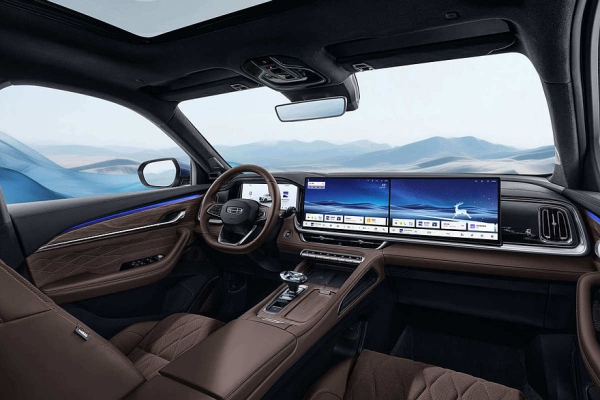 В салоне Geely Xingyue L, как и прежде, три экрана, но у модернизированного кросса сдвоенные дисплеи мультимедиа-системы стали больше (14,6 дюйма каждый, у дореформенных кроссоверов тачскрины по 12,3 дюйма). Мультимедиа работает на операционной системе Flyme Auto и имеет искусственный интеллект. Вдобавок это теперь полноценное табло, которое возвышается над передней панелью, тогда как у остальных версий экраны встроены в нее. Отметим, подобное табло в Китае ныне в моде – например, аналогичное решение имеют кроссоверы Geely Galaxy M9, Chery Fulwin T11 и Hongqi HS6, хотя у первых двух это единый гигантский экран.