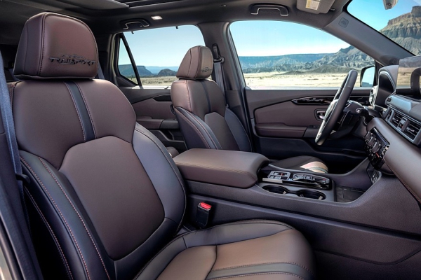 В салоне стрелочные циферблаты полностью исчезли — теперь все версии Honda Pilot оснащаются 10,2-дюймовым приборным экраном и 12,3-дюймовым мультимедийным экраном (раньше был максимум 9-дюймовый), есть беспроводная поддержка смартфонных интерфейсов Apple CarPlay и Android Auto. Электропривод багажной двери и рейлинги на крыше вошли в базовое оснащение. Обновлены отделочные материалы и дизайн прострочки кресел, появился вариант коричневой кожаной отделки. Версия TrailSport получила подогрев боковых кресел второго ряда. На всех версиях на 2-3 дБ снижен уровень шума в салоне благодаря новым дверным стёклам, улучшенной шумоизоляции дверей и капота. Версии Touring и Elite вдобавок обзавелись стандартными подкрылками.