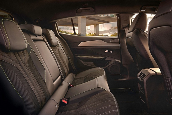 Единственное новшество на корме — это соединяющая фонари чёрная глянцевая панель со светящейся надписью Peugeot, прежде на её месте была более простая плашка с фирменной эмблемой. Также обновлён дизайн фирменных колёсных дисков — на выбор доступны варианты на 17, 19 и 20 дюймов. В цветовую палитру кузова добавлен эксклюзивный зелёный Flare Green, как у машины на фотографиях. Ключевые размеры кросс-лифтбека прежние: габаритная длина — 4687 мм, колёсная база — 2787 мм.