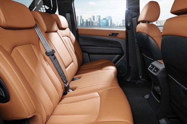 Среди особенностей дизайна экстерьера Musso – вертикальные блоки фары с пристыкованными сверху и по бокам светодиодными секциями ходовых огней, гигантская радиаторная решетка и массивные бамперы. За доплату можно выбрать пакет Grand Style (им оборудованы белая и синяя машины на фирменных картинках), он включает еще более внушительную решетку. Для модели предусмотрены 17-, 18- или 20-дюймовые диски.
