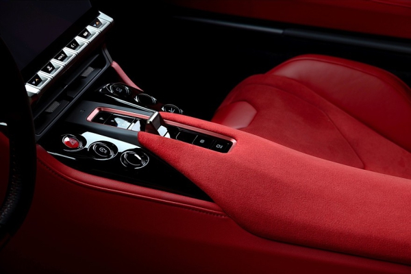 Салон GR GT оформлен предельно лаконично, глазу здесь не за что особенно зацепиться, всё подчинено тщательно выверенной эргономике. Например, мультимедийный экран заметно отодвинут от передней панели и придвинут к водителю для максимально удобного использования, и это единственная сенсорная панель, все остальные органы управления физические. Микроклиматом заведуют крупные качающиеся клавиши, селектор АКП выполнен в виде крупного металлического тумблера. Щиток приборов — электронный, с очень наглядной графикой на гоночный манер, то есть без всяких украшательств. Ковшеобразные кресла водителя и единственного пассажира опущены максимально низко. Педали газа и тормоза напольные и выполнены из металла.