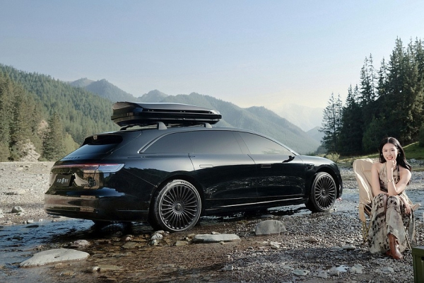 Спереди Stelato S9T практически дословно повторил седан Stelato S9, а вот у задних фонарей универсала немного иная форма и собственный рисунок. «Сарай» тоже имеет безрамочные двери с выдвижными ручками, а вместо традиционных зеркал можно заказать камеры (как и для четырехдверки). Для универсала еще предусмотрен «черный» пакет – с ним в этом цвете будет выполнен весь наружный декор и диски. Стандартные колеса – 20-дюймовые, 21-дюймовые идут за доплату. Уже в базе есть пневмоподвеска и автопилот ADS 4 от Huawei с лидаром над лобовым стеклом.