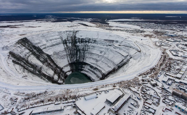 Вид на кимберлитовую трубку алмазного карьера «Мир»