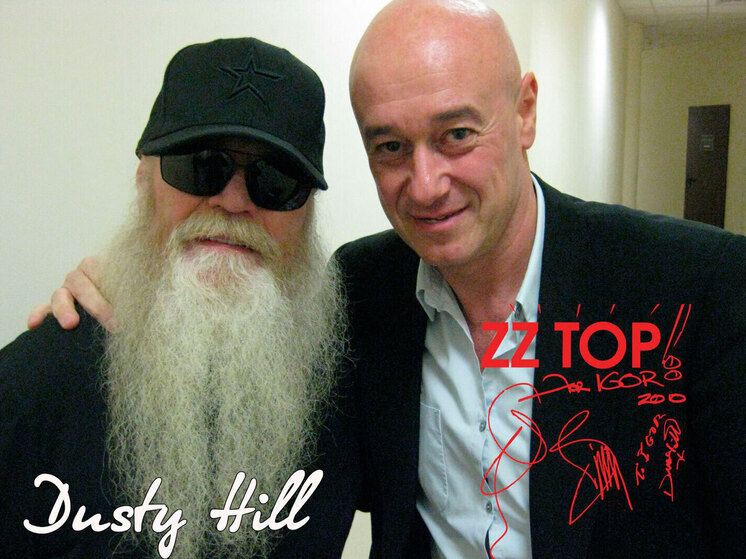 Я встретился с Билли Гиббонсом, вокалистом и гитаристом, в 2012 году, когда ZZ Top приехали с гастролями в Москву. Были же времена! Познакомился и с ним, и с Дасти Хиллом, басистом, клавишником и тоже вокалистом. К сожалению, Дасти в 2021 году умер, и его место занял Элвуд Фрэнсис.