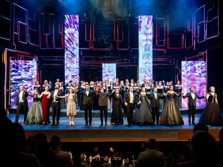Финал спектакля. Все артисты на сцене. Фото Антон Дубровский