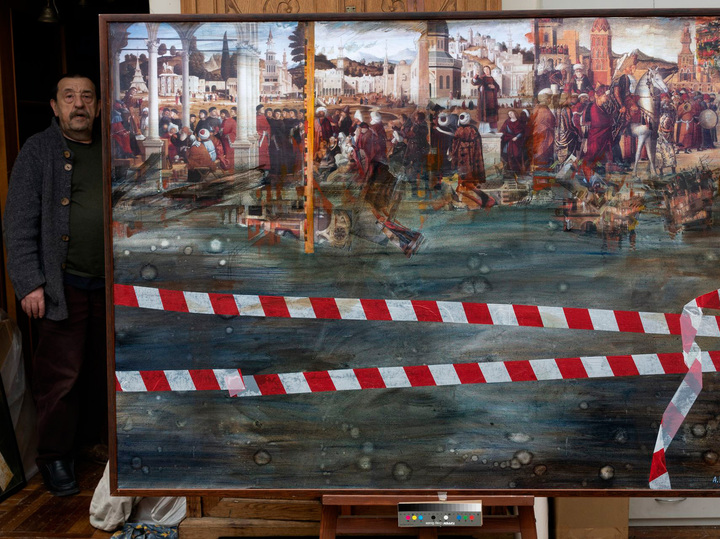 Съемки «Высокой воды» начались в 2023 году. И мы становимся свидетелями того, как Белкин готовит выставку «Карпаччо, высокая вода» в Эрмитаже. Параллельно планировалась еще одна его выставка в питерском Манеже, которая так и не состоялась. А могло быть феноменальное событие — две параллельные выставки одного художника.