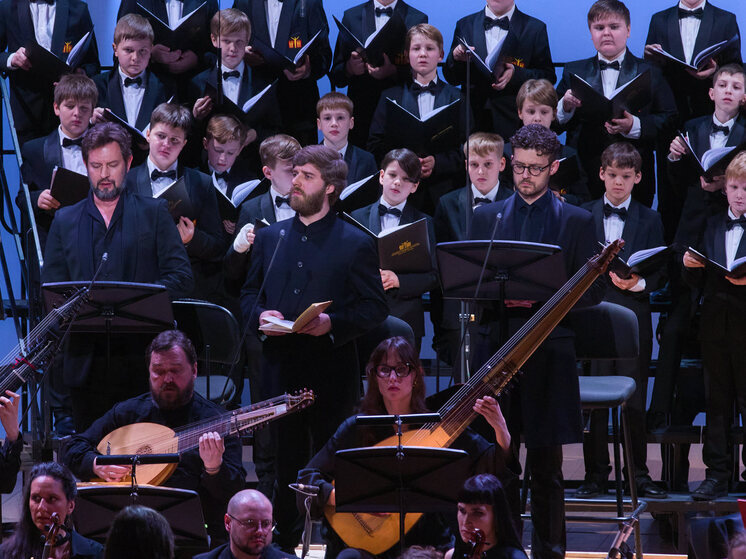Чтобы «Страсти по Иоанну» звучали точно так, как было в давние времена, нужно, чтобы на сцене была группа континуо — «непрерывный бас», который звучит на протяжении всего произведения или раздела. Группа континуо — та видимая на сцене часть, которая нажимает кнопку перемещения в другое время. Старинные лютни, клавесин, орган позитив (небольшой передвижной орган), теорба (огромный струнный щипковый инструмент с вытянутым грифом) — все было на сцене. Особого колорита добавили роскошные вокалисты — Лилит Давтян, Дмитрий Синьковский, Михаил Нор, Юрий Махров, Евгений Ставинский и Илья Татаков. Помимо качественного исполнения (а музыка Баха невероятно сложна!), певцы порадовали и блистательным немецким языком. Как отметили в программке концерта, специально для выступления с артистами занимался преподаватель немецкого языка.