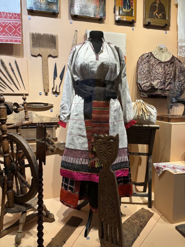 Чувство прекрасного никогда не было чуждо человеку, поэтому цель была не просто одеть себя и семью, а одеть красиво. Например, украсить изделия кружевом или постелить на стол праздничную кружевную скатерть. Что удивило, так это устройство для плетения кружева, напоминающее подушку на ножках — это валик, набитый соломой. Мастерицы втыкали в него специальные тонкие гвоздики, создавая основу для будущего кружевного рисунка, а затем вооружались нитями и коклюшками. Процесс плетения столь быстрый, что едва замечаешь, как рождается красота под звон коклюшек. Вжух, и перед вами салфеточка! Любопытно, что время на такой досуг было лишь поздней осенью и зимой, когда уже не было работы в полях (и это во времена, когда не было электричества в домах!), так что зимой приходилось нелегко, времени на работу было мало, а забот — много.