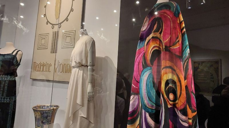 У афиши русских балетных сезонов в Монте-Карло 1911 года под руководством Сергея Дягилева, оказавших влияние на формирование ар-деко, всегда толпятся посетительницы. Рядом —  скромный стенд с эскизам, программками спектаклей, каталогом салона  декоративного искусства 1913 года, иллюстрациями Ивана Билибина,  разворотом «Царевны-лягушки» на русском языке.