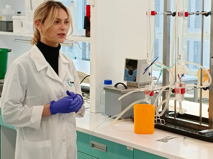 …Мы проходим в лабораторию, где ученые моделируют инфаркт в режиме ex vivo (вне организма) и in vivo (в живом организме крысы), а затем испытывают на них действие новой молекулы.