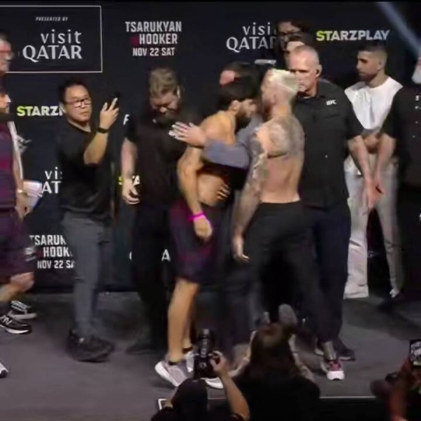 Накануне поединка в Катаре бойцы традиционно провели битвы взглядов. Во время данной процедуры Хукер и Царукян сцепились и чуть не подрались. От беспредела спортсменов уберегли присутствующие рядом сотрудники и члены команд — они развели бойцов в разные стороны.