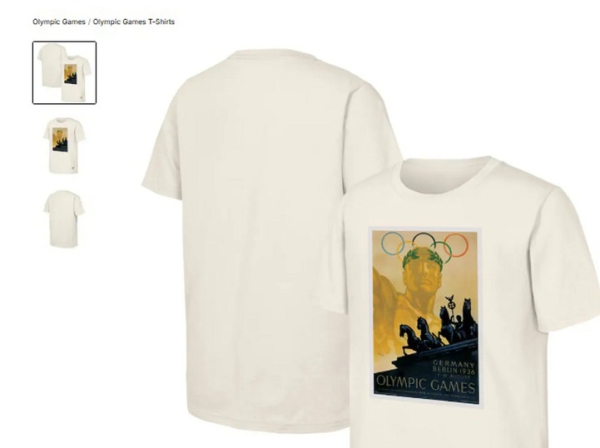 Несколько общественных групп и межправительственных организаций в Германии и соседних европейских стран призвали к немедленной приостановке продаж футболки, которая посвящена летним Олимпийским играм 1936 года в Берлине. Международный олимпийский комитет включил этот предмет в свою коллекцию наследия, где все олимпийские издания получают одинаковое оформление. На скандальной футболке изображен мужчина в лавровом венке, над головой которого расположены олимпийские кольца. Внизу изображены Бранденбургские ворота, один из самых известных символов Берлина, а также надпись «Германия, Берлин, Олимпийские игры 1936».
