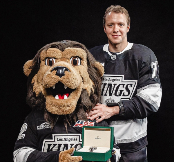 Опытный россиянин будет выступать за «Лос-Анджелес» под 72-м номером, который он выменял у талисмана клуба Бэйли. Артемий подарил маскоту команды дорогие часы. Напомним, что под этим номером Панарин выступал в своем первом клубе НХЛ «Чикаго».