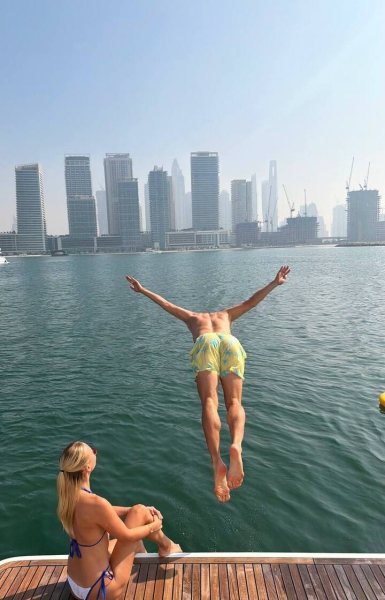 В Дубае влюбленные вышли в море на яхте и провели так целый день. Анастасия не упустила случая козырнуть стройной фигурой, сделав несколько фото в купальнике.