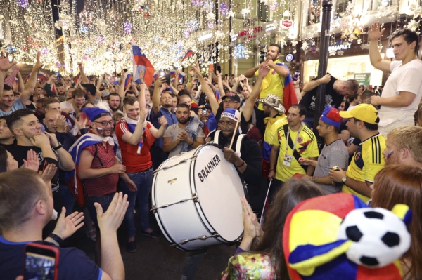 Болельщики со всего мира на Никольской улице в Москве на ЧМ-2018 / Фото: AP